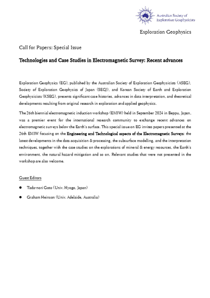 Contributions on engineering and technical aspects of explorations: Special issue in Exploration Geophysics ー Submissions are now open!